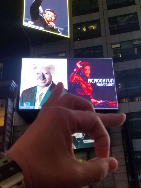 文在寅大統領の誕生日を祝う広告がタイムズスクエアに 韓国ネット民が対抗してノムヒョンの広告を出す