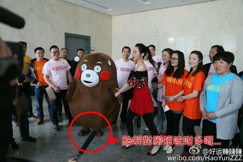 どうやらこれは中国が勝手に作った、くまモンのパクリキャラクターで名前は「好運熊」というらしい。