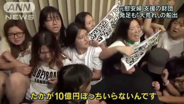 設立会見では、財団設立に反対する大学生らが乱入し、一時、騒然となった。